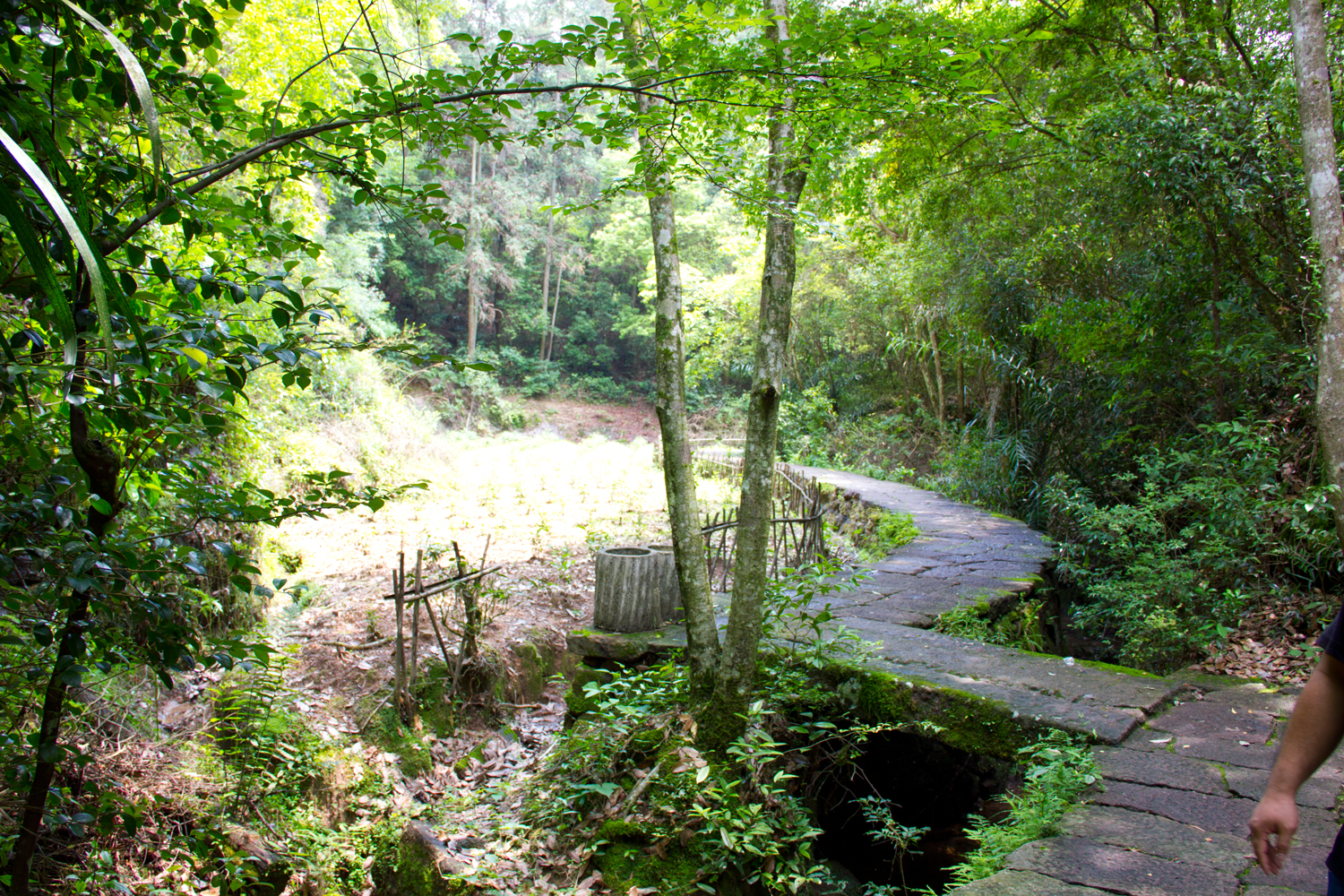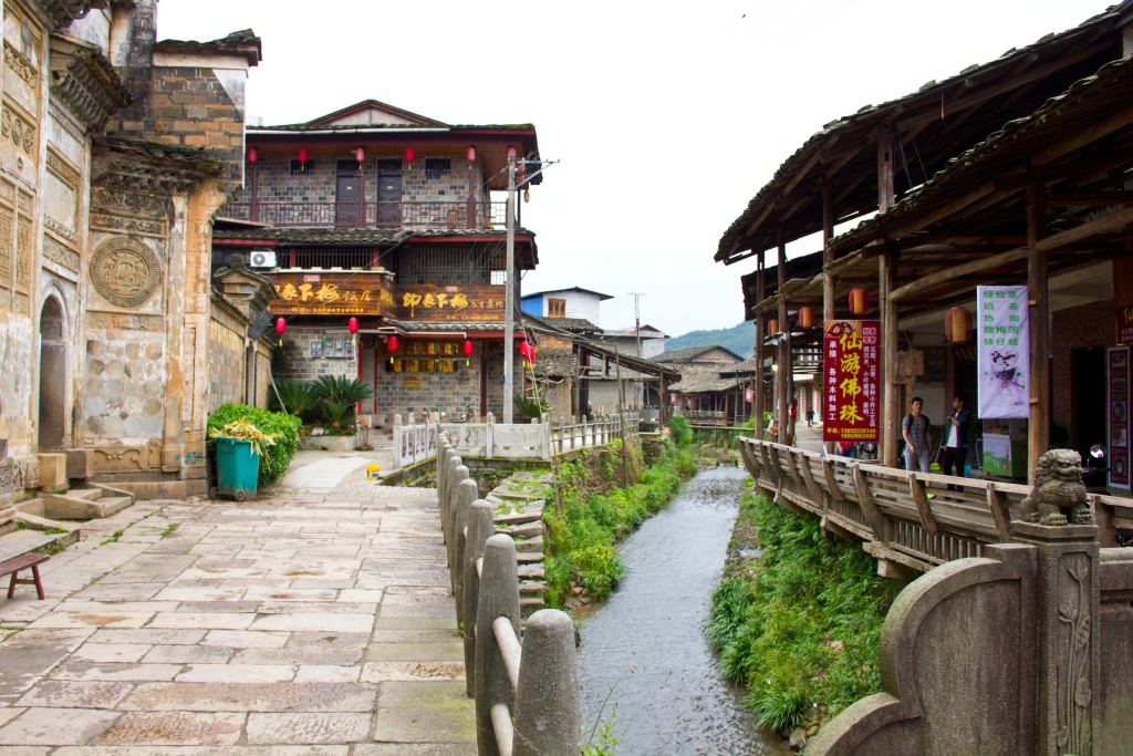A quiet and serene place located on both sides of a mountain stream. On a stone wall next to the stream, there is an inscription with the name of the place. It was made by tea merchants from Jiangxi who donated money for the construction of the stone road.