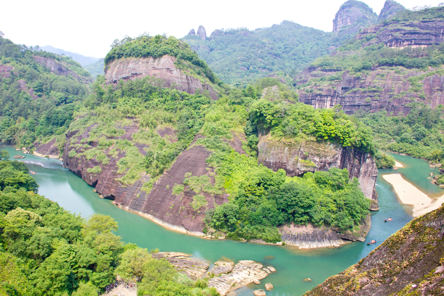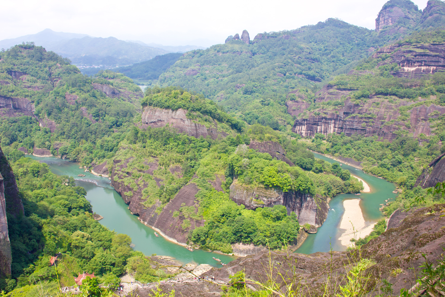 Jade Maiden Peak and Dawan Peak look at each other across the shore like a pair of lovers. This scenic view is the logo of Fujian Province.