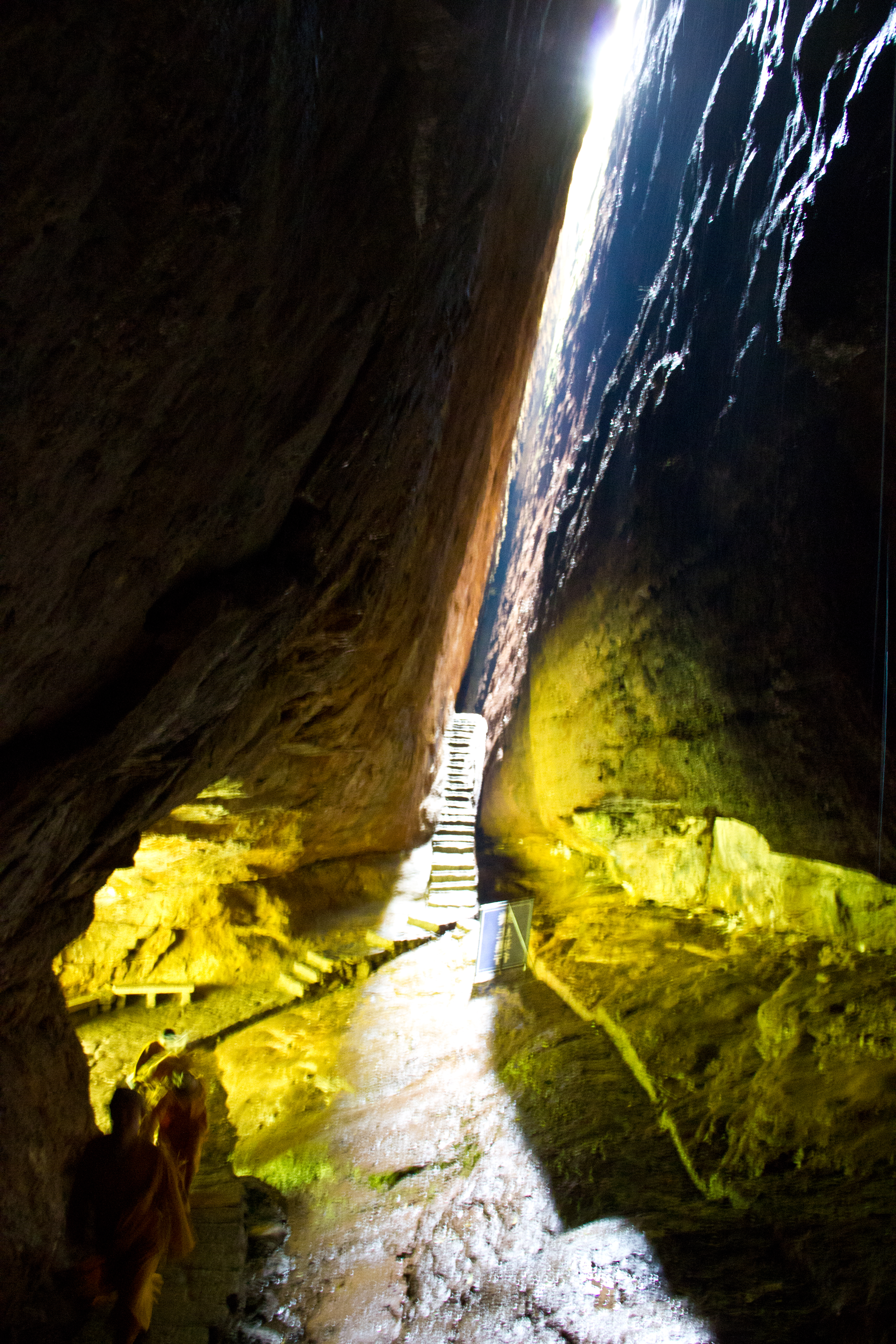 Xianyang Peak is the highest peak in the Wuyi Mountain tea region, at 717.7 meters, and is a bizarre three-peaked formation. All three peaks of Yangfeng face east, with the highest being Great Yang (Chinese: 大仰, pinyin: Dàyǎng), the second highest being Middle Yang (Chinese: 中仰, pinyin: Zhōng yǎng), and the third highest being Lesser Yang (Chinese: 小仰, pinyin: Xiǎo yǎng). Many people, looking at Xianyang Peak, see them as images of horses rushing up into the sky. There are many scenic spots on Xianyang Peak. Of particular interest is the Bixiao Cave (Chinese: 碧霄洞, pinyin: Bìxiāo dòng), literally meaning "blue sky cave", four or five feet deep and two or three feet high.