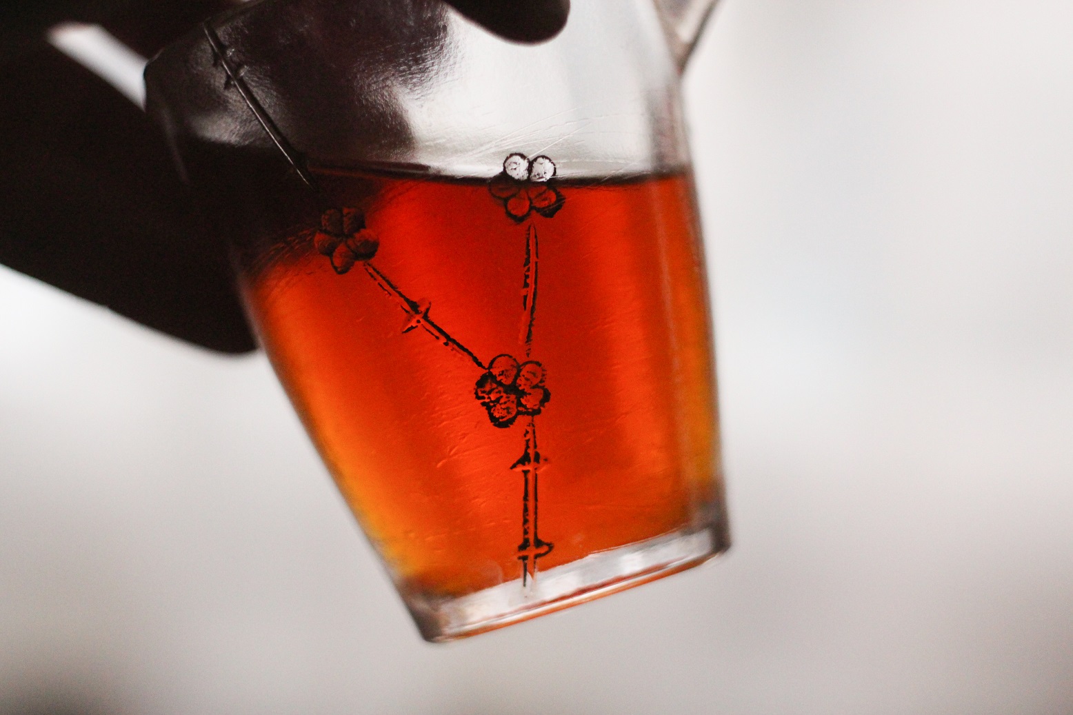 Чай интересно меняется от пролива к проливу. В начале – это древесина дуба и кожа. Во втором проливе появляются сахарные нотки, абрикосовая косточка и коньяк. В третьем-четвёртом – свежие лилия и сирень на деликатном древесном фоне.