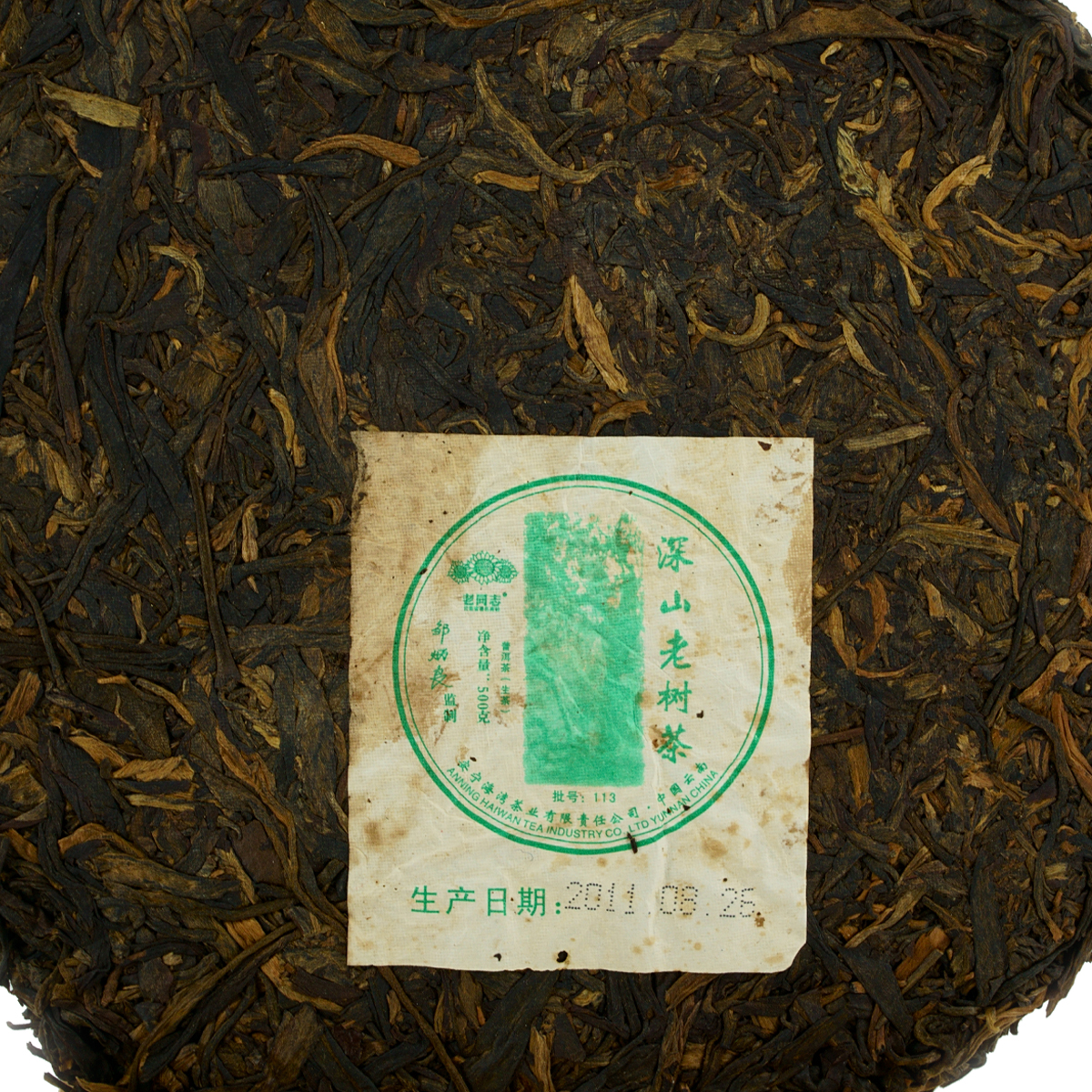 The 2011 Sheng pu-erh "Shenshan Lao Shu" from the "Laotongzhi" (Old Comrade) brand of the Haiwan factory is an excellent factory-produced pu-erh made from wild tea trees over 300 years old. It makes a luxurious gift, a great option for storage, or for ceremonial tea drinking on special occasions.