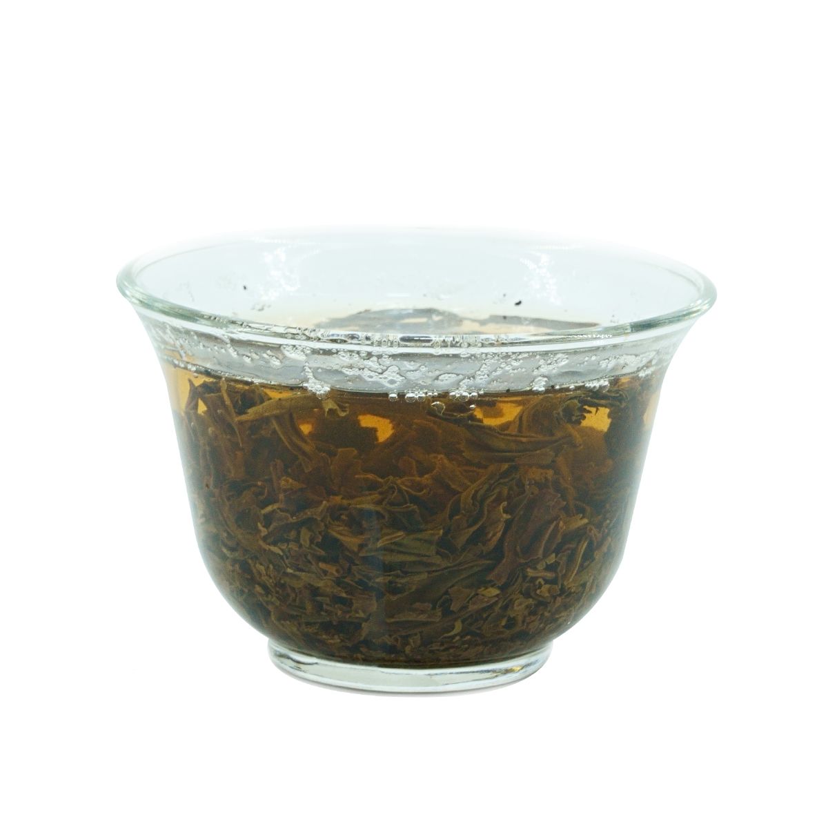 The taste of the brewed tea is sweetish-tobacco, fruity-spicy, with a candy-like sourness, spicy tobacco notes, similar to the aroma of an empty paper package that recently contained grandfather's shag.
