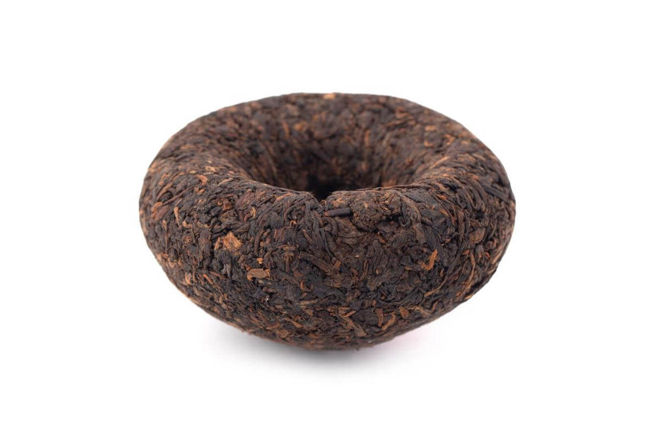 A large 250-gram nest is easily cracked with a tool. Initially, the tea leaves impart a sweet and sour aroma, reminiscent of a chocolate muffin. Over time, the aroma shifts to that of a wooden Russian steam bath, as if sitting in a highly humid, hot atmosphere. The taste has a distinct bitterness, reminiscent of coffee or cocoa, followed by a slightly sweet aftertaste of hematogen and a metallic aftertaste. The color of the tea infusion is a brownish-wine-red. As it cools, the tea returns to its chocolate aroma. With prolonged sipping, the bitterness disappears completely, leaving a pu-erh smoothness, comparable to a medium-strength Americano.