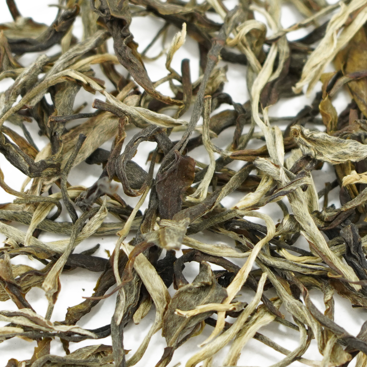 Чайные листья имеют светло-зеленый цвет с серебристыми вкраплениями типсов. Листья крупные и равномерно обработаны, что свидетельствует о высоком качестве обработки. Рассыпная форма чая делает его удобным для заваривания и позволяет лучше контролировать крепость настоя.