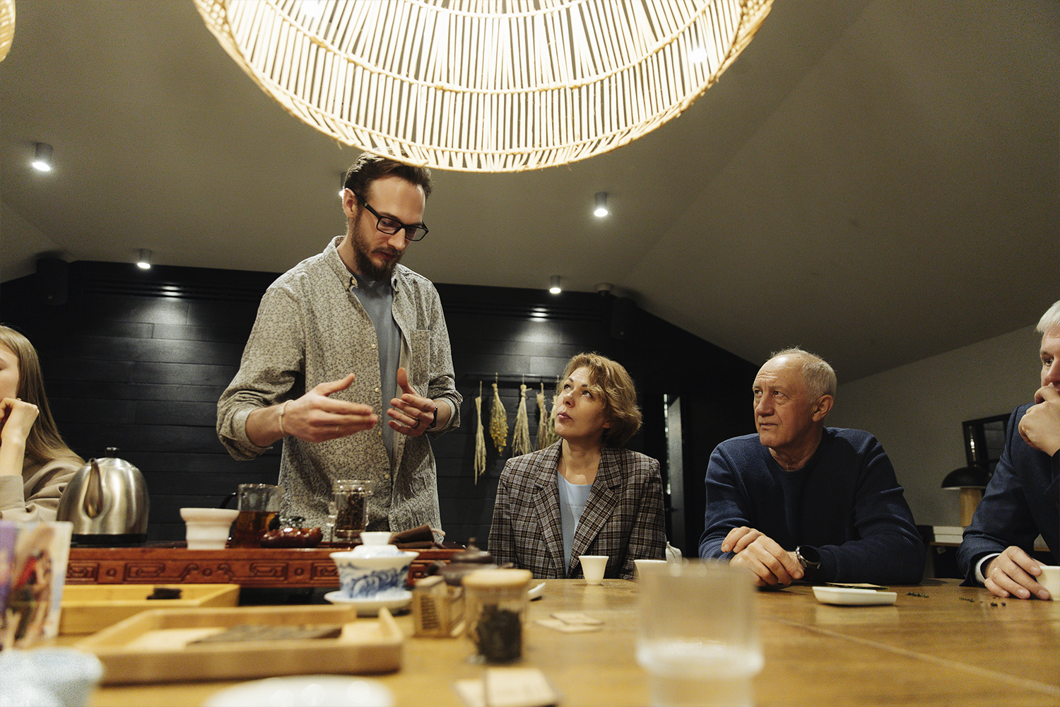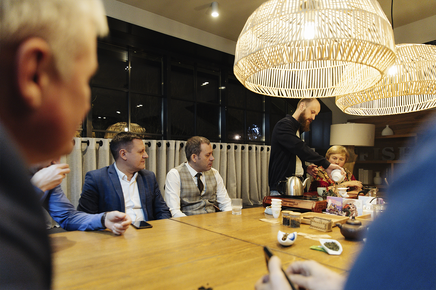 The team of specialists from "Chaynaya Liniya" held a presentation of the Chinese tea ceremony and an excursion into tea culture in a separate VIP room on the second floor of the restaurant "Bellini". Guests of the restaurant "Bellini" enjoyed rich varieties of Chinese tea and learned about different ways of making tea.