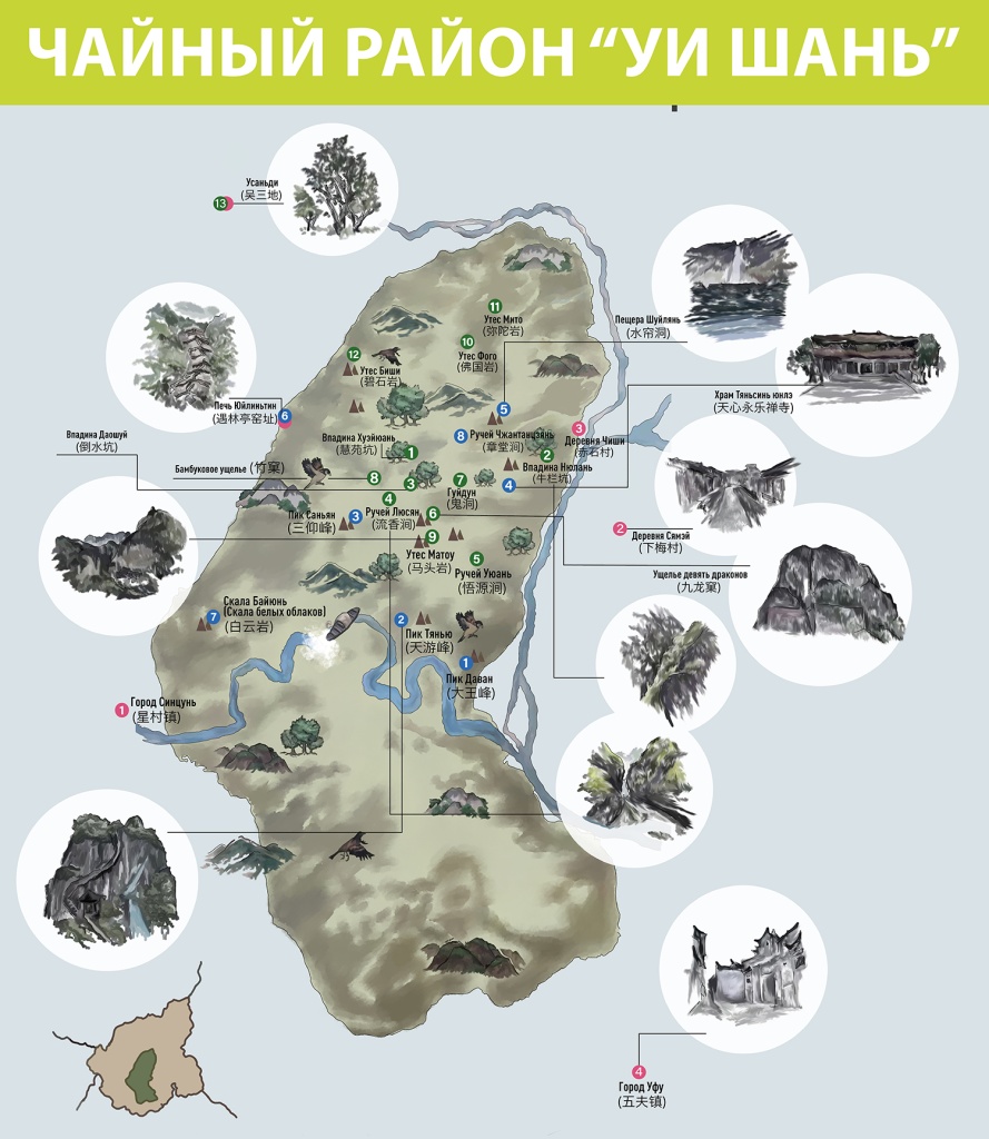 According to popular belief, the area where rock tea grows is divided into regions: