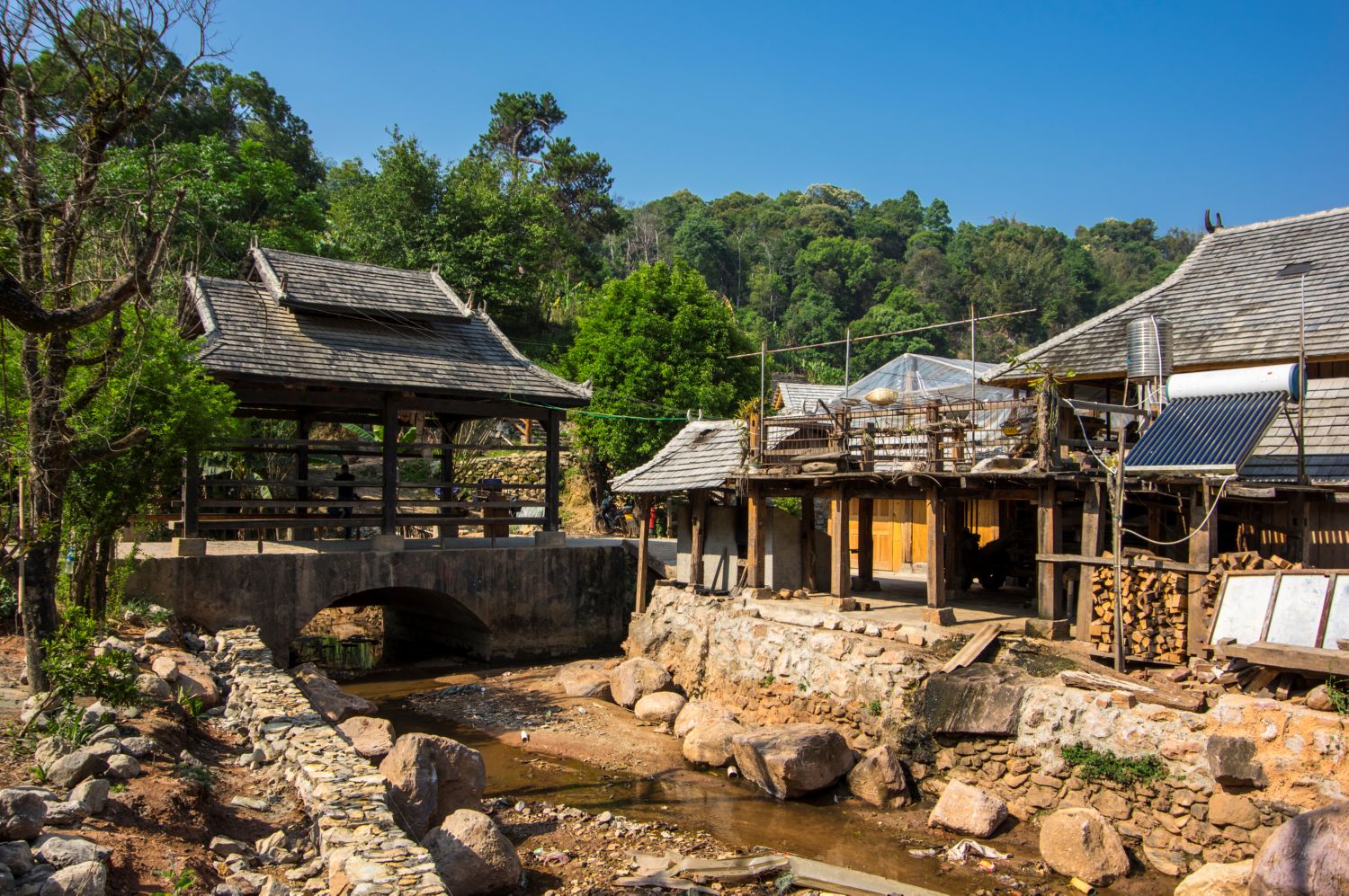 Nogan is a village with a thousand-year history, located among the huge ancient plantations of Jingmai and Manjing tea. The name of the village in the language of the Dai people means a drinking source for deer. According to legend, deer often came to these places to drink, because the purest mountain streams flow here, but there is also a version that in the names Nogan, Nogan, Nokan the syllable "No" means a reservoir, and the syllable "Kan" means golden, then the name of the village is translated as a golden lotus in a reservoir. These poetic names indicate to us a blooming fertile land. The village is surrounded by mountains on 4 sides, once the Dai people stopped here. This is a classic closed-type village of the Dai people, located in a gorge and surrounded on all sides by dense forest, old tea trees and a leisurely mountain stream. Ancient houses are built on piles.