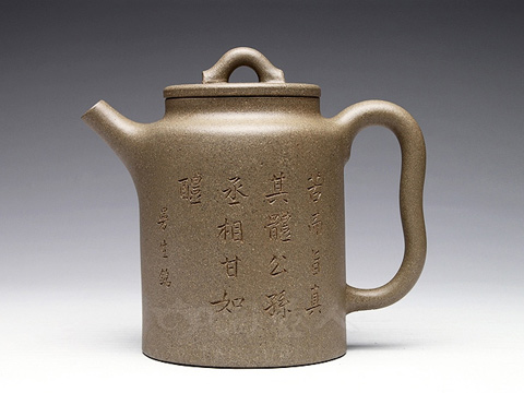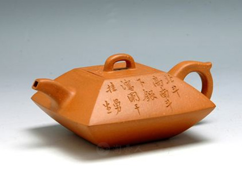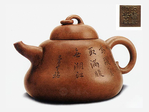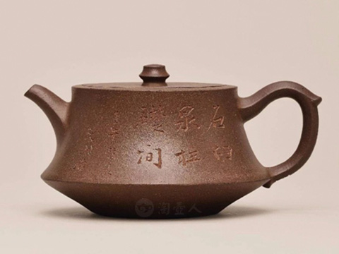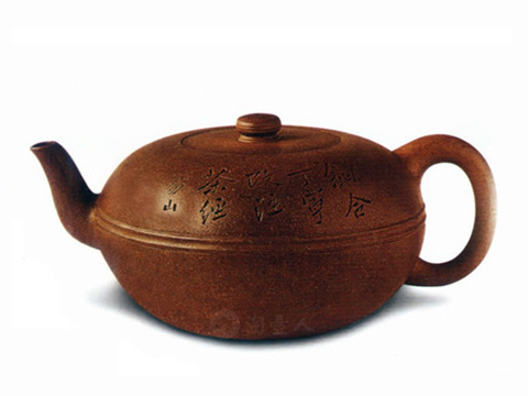 Before Manshen, purple clay teapots were mostly traditional in shape, often repeating each other and not subject to significant changes. However, teapots created by Chen Manshen overcame this conservatism and constraint, having a “square and round” shape (Chinese: 方非一式, 圆不一相, pinyin: Fāng fēi yīshì, yuán bù yī xiāng). His teapots are simple, bright and clear in shape, with plenty of free space on the surface, decorated with poems and inscriptions.