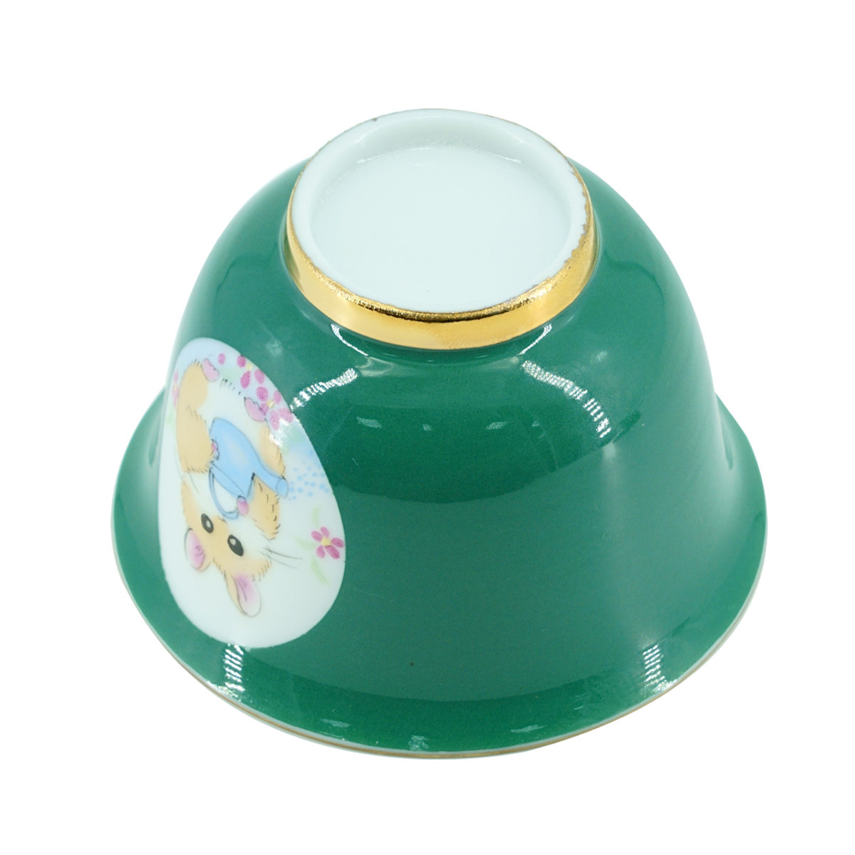 Functionally, the gaiwan is a versatile teapot and an essential tool for the Chinese tea ceremony. It helps control the steeping time and dose the tea to achieve the desired flavor and aroma. Gaiwans are used not only in the Chinese tea ceremony but also in everyday life in Sichuan province, where tea can be drunk directly from the gaiwan. Gaiwans (盖碗, gàiwǎn) are used to brew various types of tea, but are most often used for light-colored teas, as the gaiwan's thin walls quickly release excess heat into the air. This magnificent "Hamster in the Garden" gaiwan features a hamster holding a watering can and is covered with a glossy, rich green glaze.