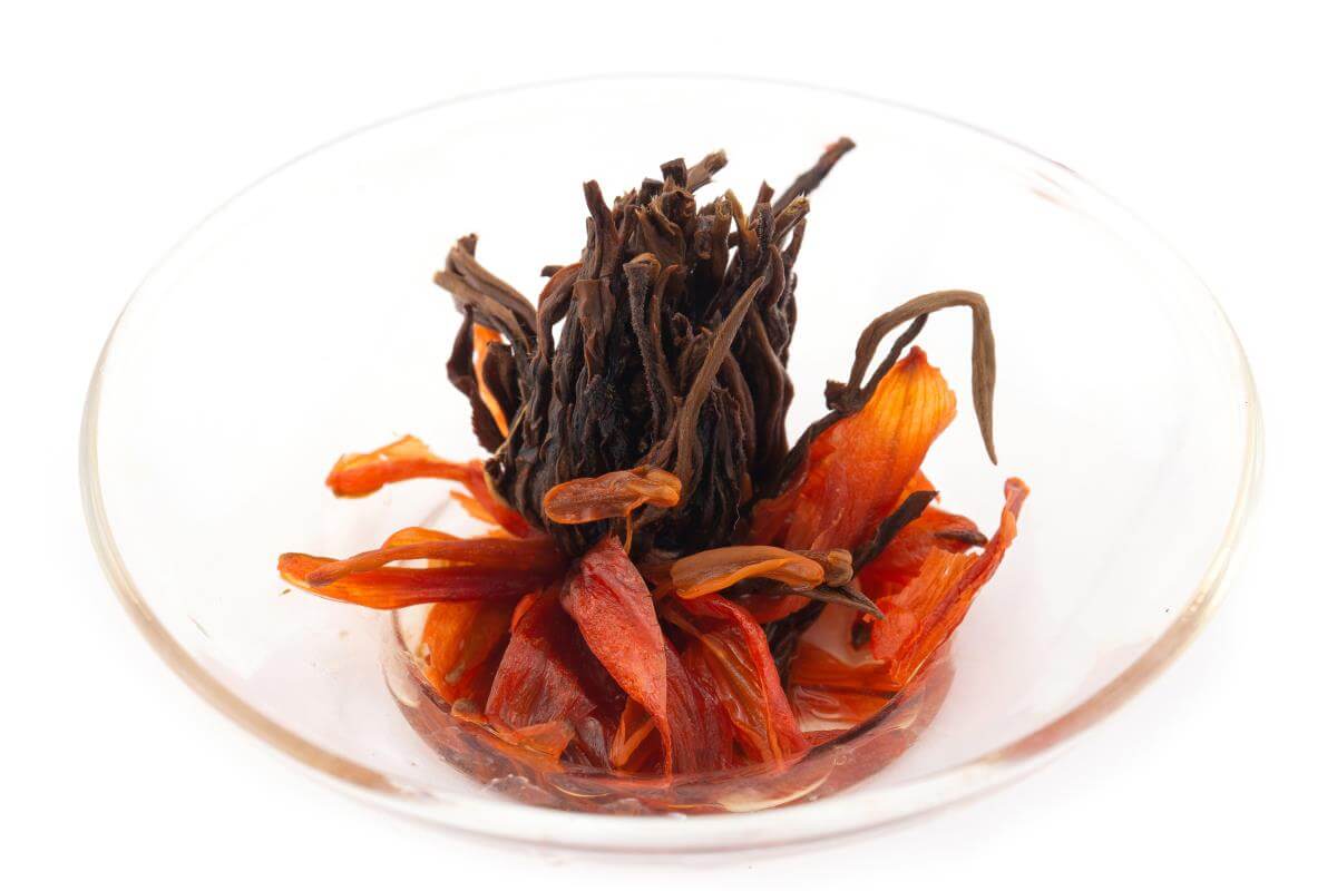 Связанный чай — вид китайского чая, производимый как правило из листьев зелёного чая (иногда из красного или белого), связанный с различными цветами, и спрессованный в большинстве случаев в форму шарика. При заваривании связанного чая мы получаем вкус настоящего свежего зелёного чая и благоухающий цветочный аромат. В производстве связанного чая добавляются как правило цветы хризантемы, календулы, жасмина, гибискуса, пиона, лилии и другие. Рекомендуется заваривание связанного чая в стеклянной посуде, так как именно в ней можно наблюдать,