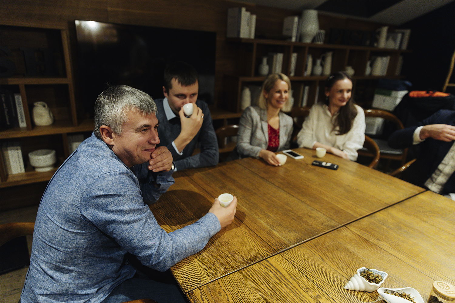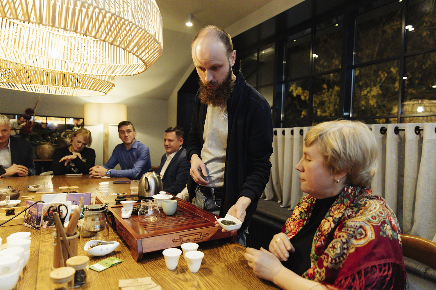 The team of specialists from "Chaynaya Liniya" held a presentation of the Chinese tea ceremony and an excursion into tea culture in a separate VIP room on the second floor of the restaurant "Bellini". Guests of the restaurant "Bellini" enjoyed rich varieties of Chinese tea and learned about different ways of making tea.